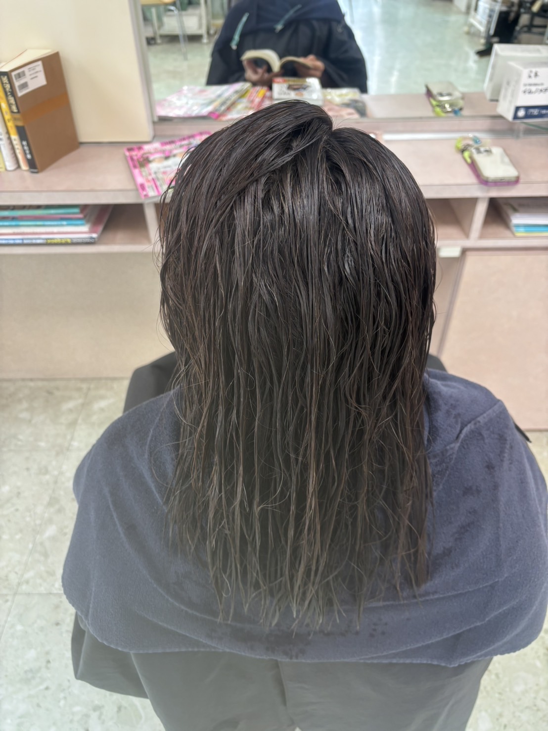 後頭部の癖が強いお客様。しっかり伸びやすいように前処理しながら施術しました。