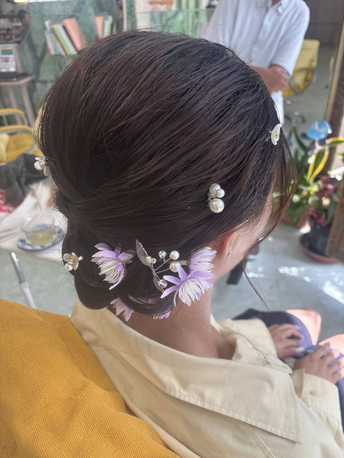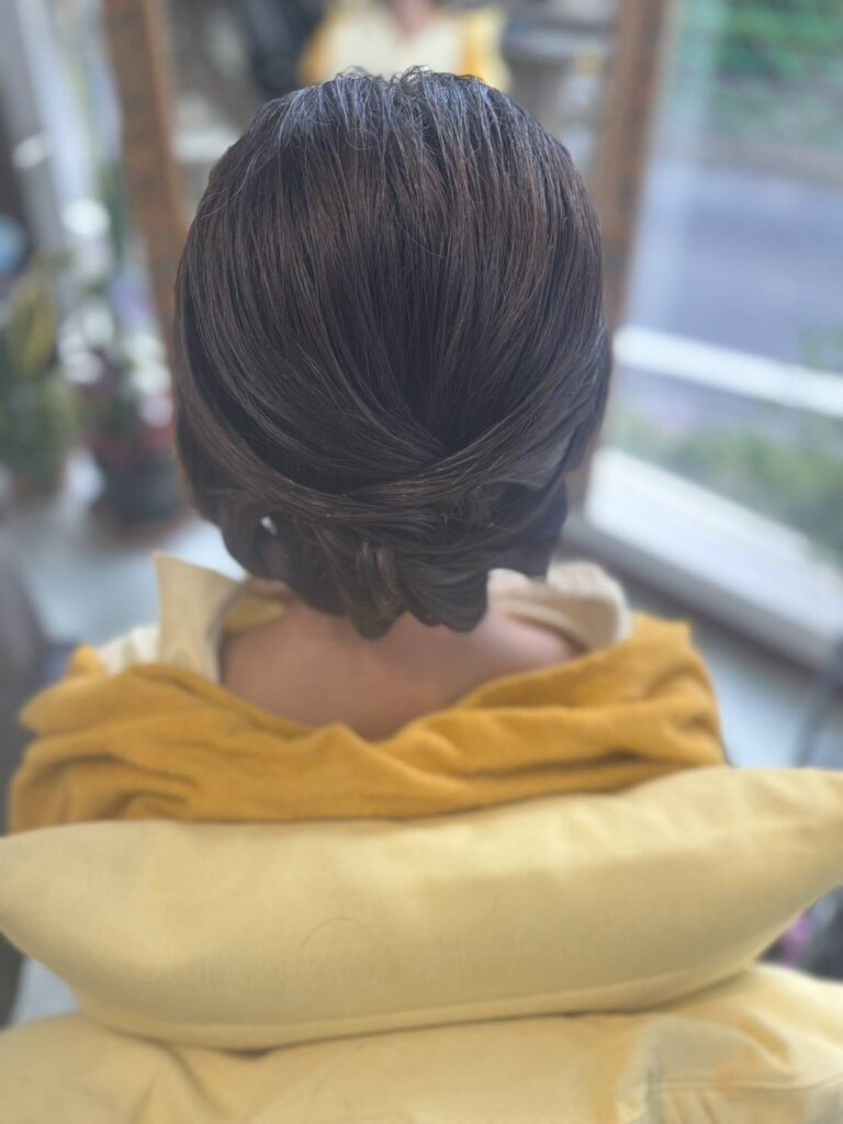 お飾りを付ける前のロープジニョンのスタイルです! 控えめで、品が香るアップスタイルとなりました✨素晴らしい撮影会になる事でしょう。