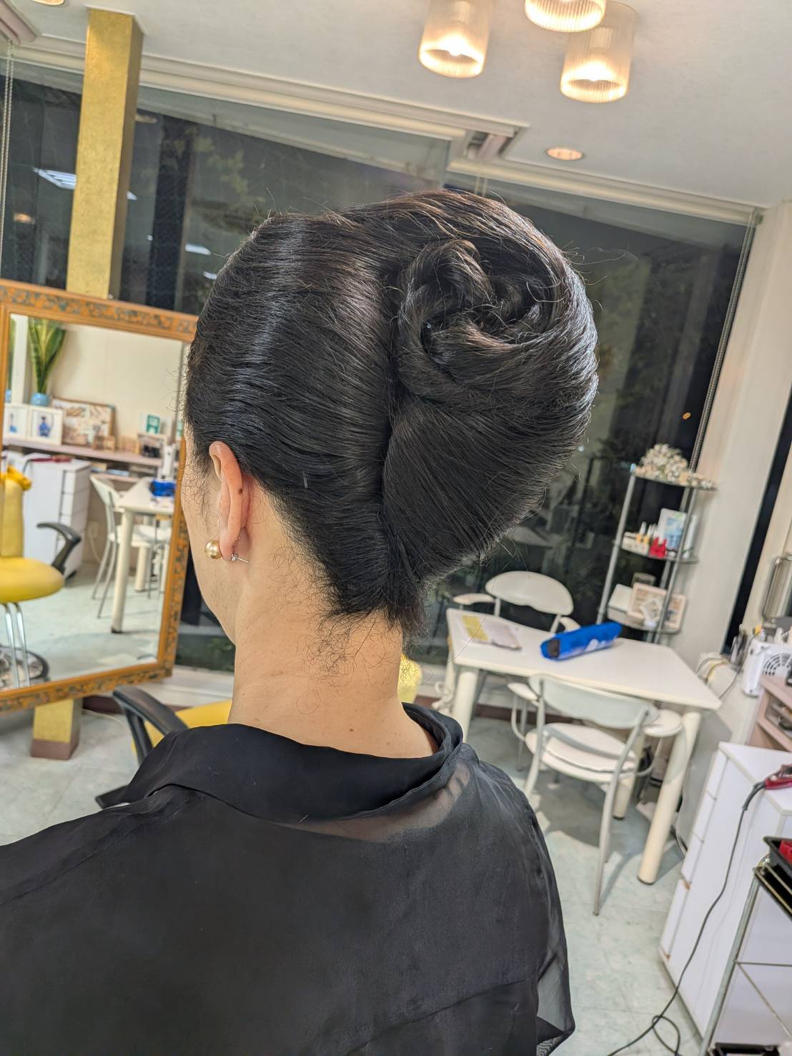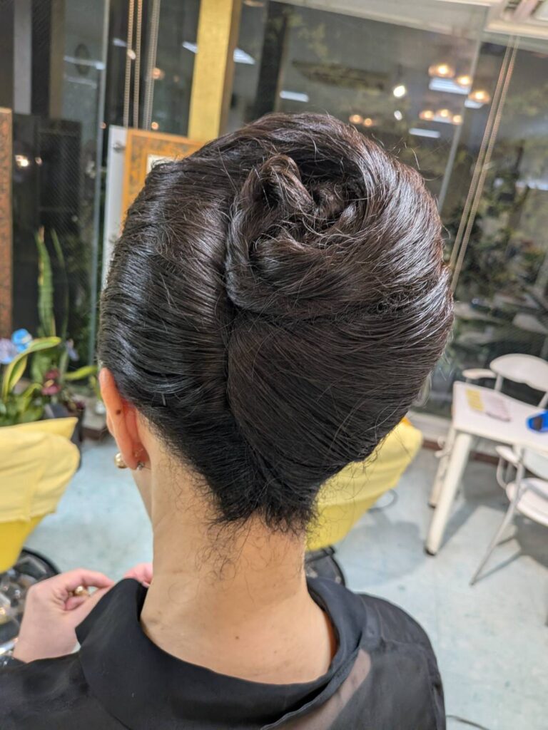 第3弾の朗読会は、天下の猛女帝、北条政子を演じる予定だそうで、今夜の食事会と、明日の本番を想像して、妖艶な夜会巻きに仕上げたいと、、、結い上げてみました。うなじが美しい演者さんなので腕のふるいがありますね、ホント!