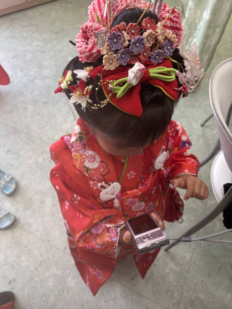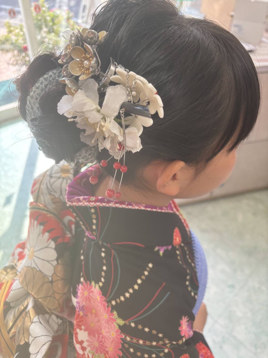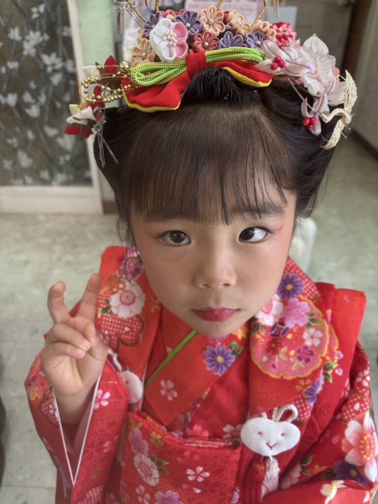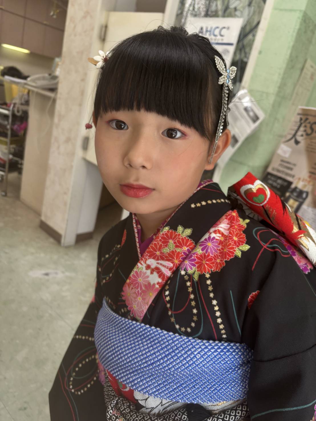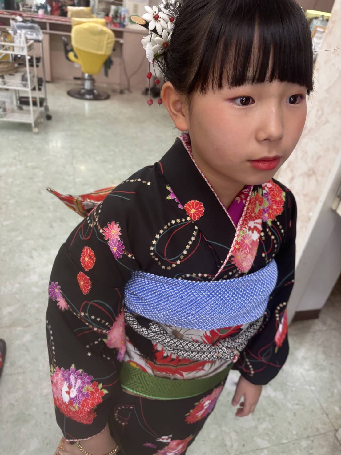 3人三様、それぞれの可愛さが有り、ホントに楽しくお仕度させて頂きました! 写真撮影が、最後の時間になっているそうで、朝9時過ぎからのお支度で、我慢できるか心配では有りますが、それもこれも後からは、良い思い出になることでしょう! 本当におめでとうございました! ご家族の皆さまお疲れ様でした!
