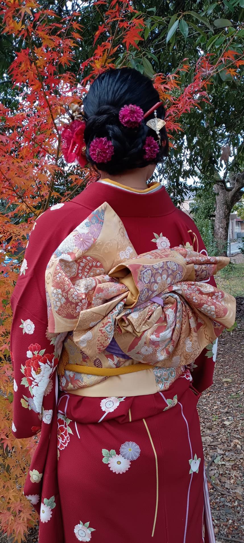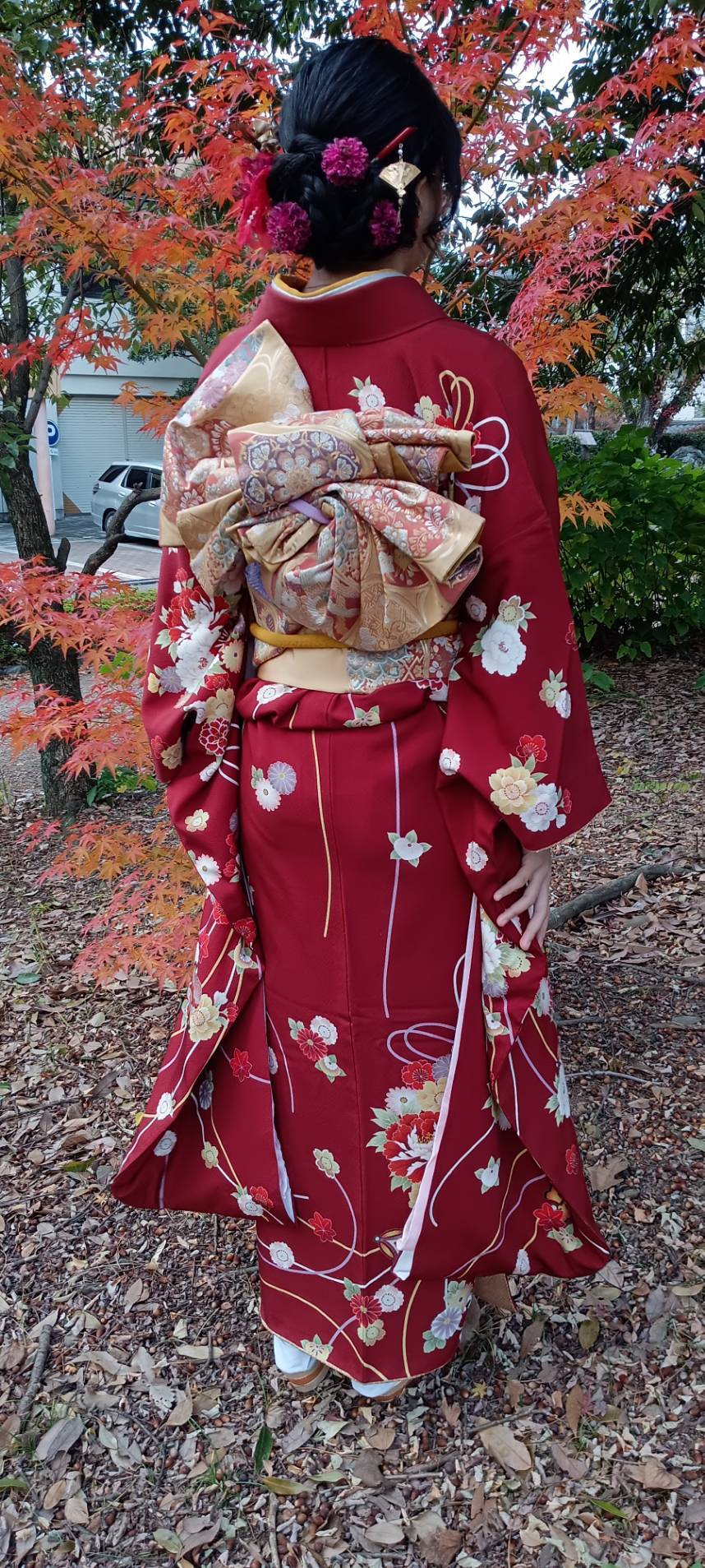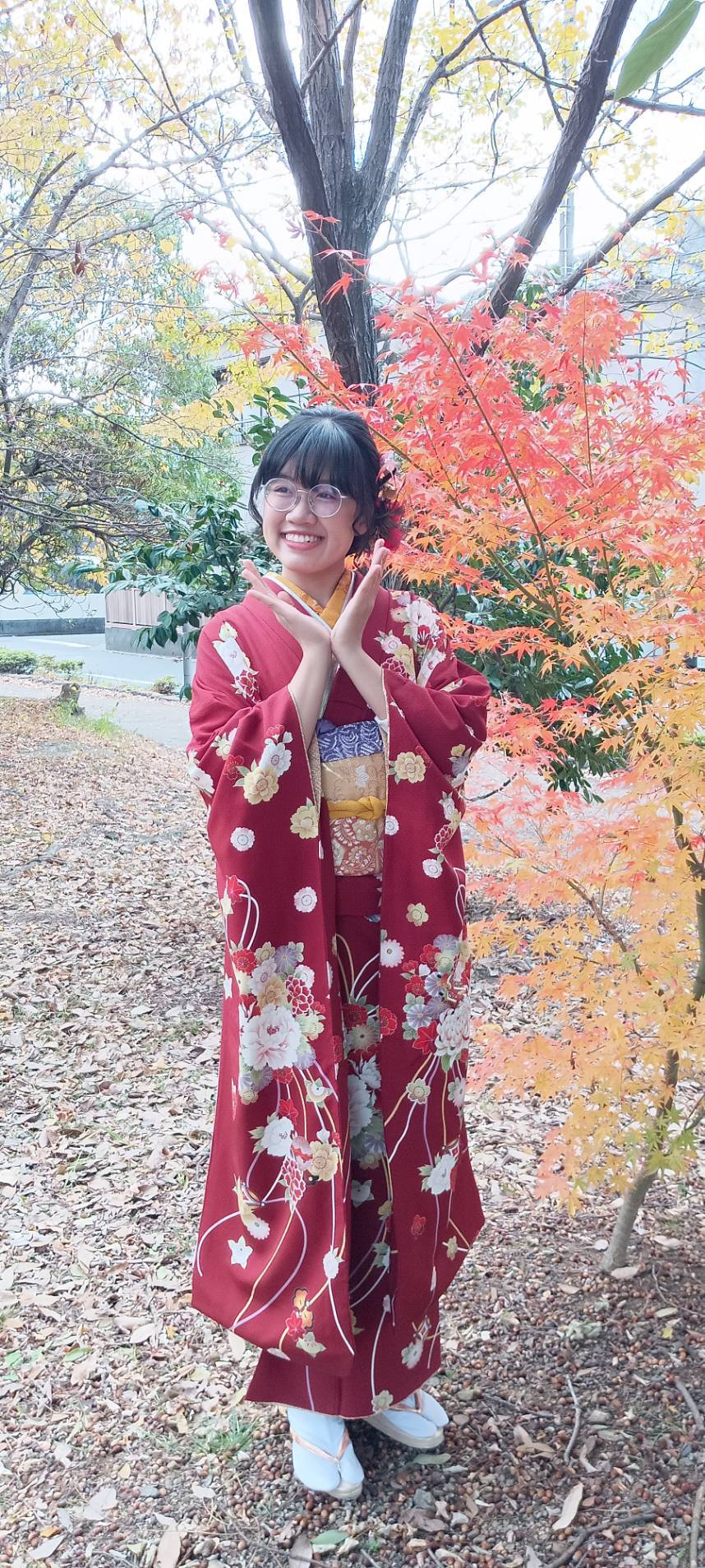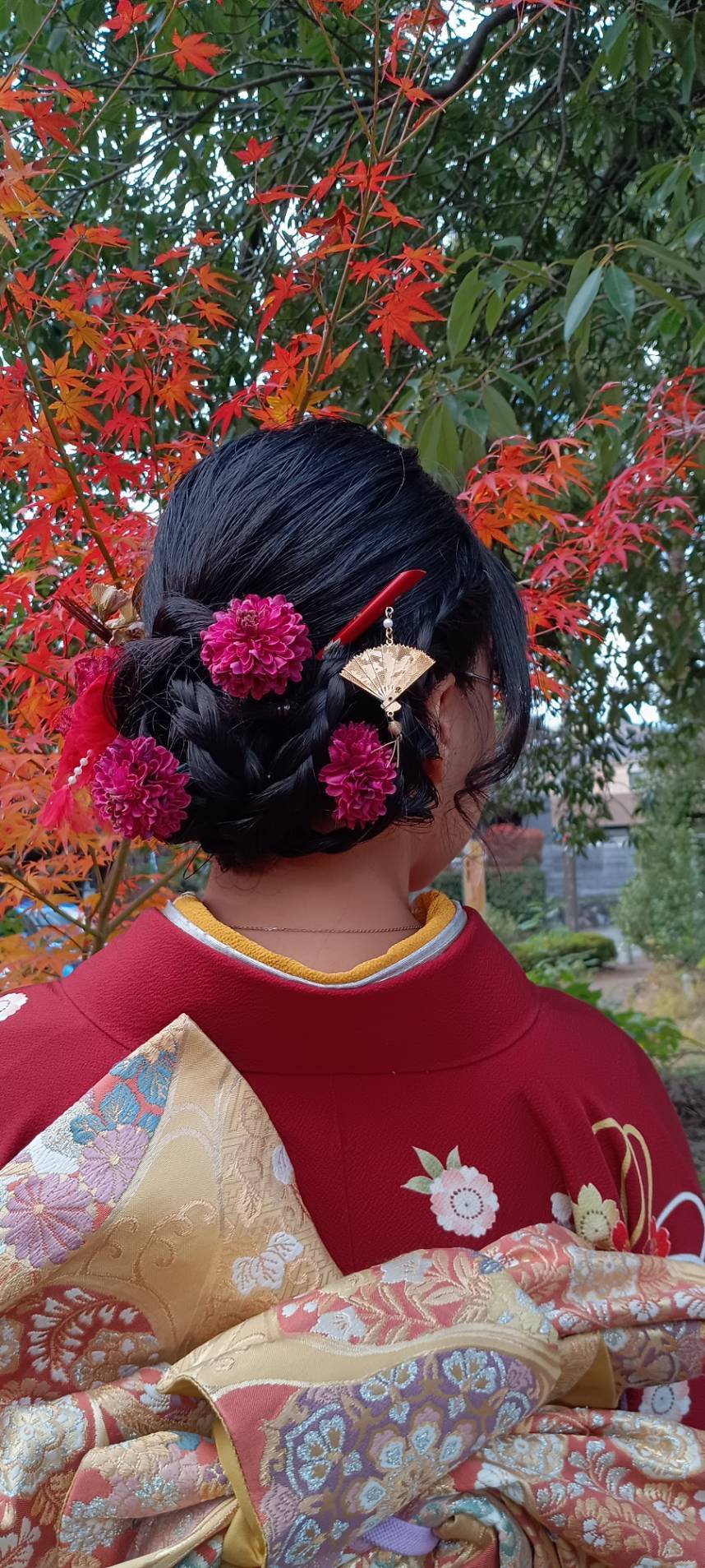 艶やかなもみじ🍁の紅葉にも負けないぐらい素敵な艶姿、ケイズ理事小林パパも思わずお顔がほころびますね、一緒の女子は、彼女お姉様です!妹が170センチの高身長でビックリ🫨可愛いお姉さんにサポートして頂きイイ感じですね、やっぱり姉妹は頼りになります✨