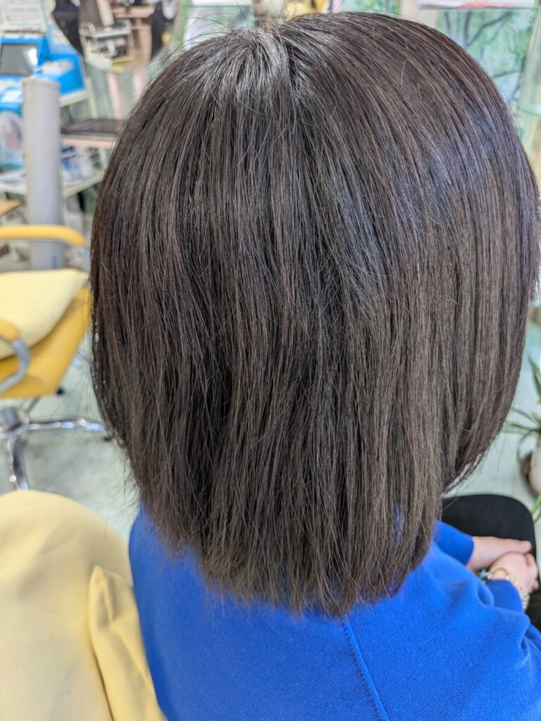 ストレートパーマかけました?って間違えるほどの艶と収まり感が見事ですね。