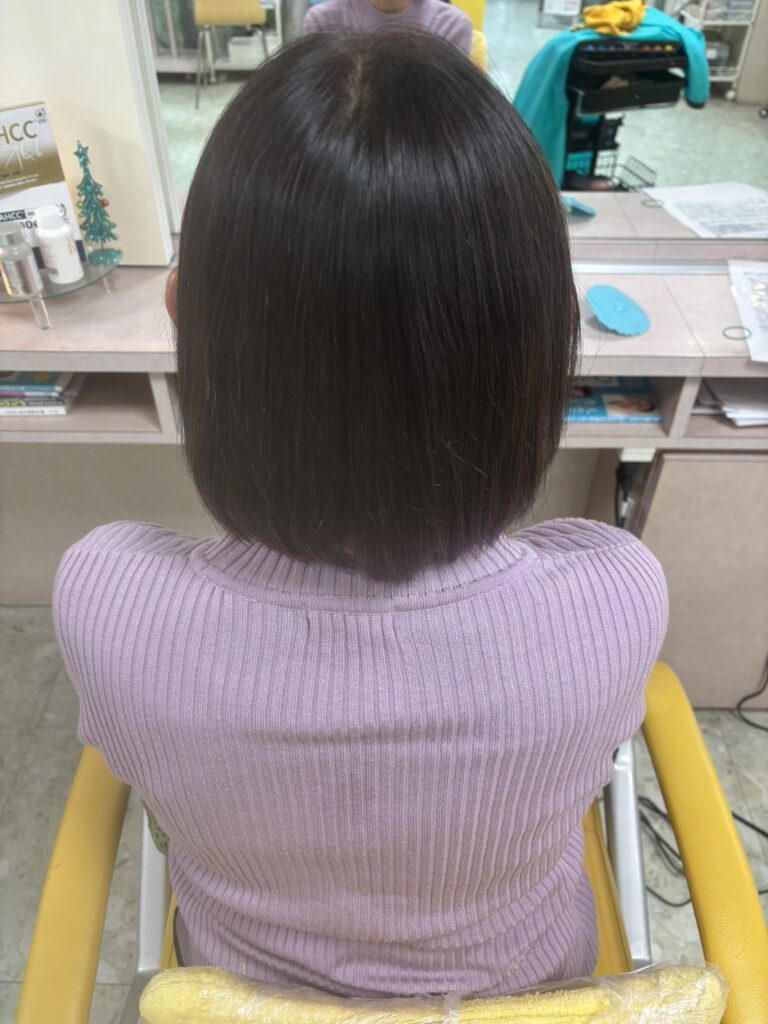 細毛ちゃんでエイジング毛のお客様。自然な艶髪に変身です。