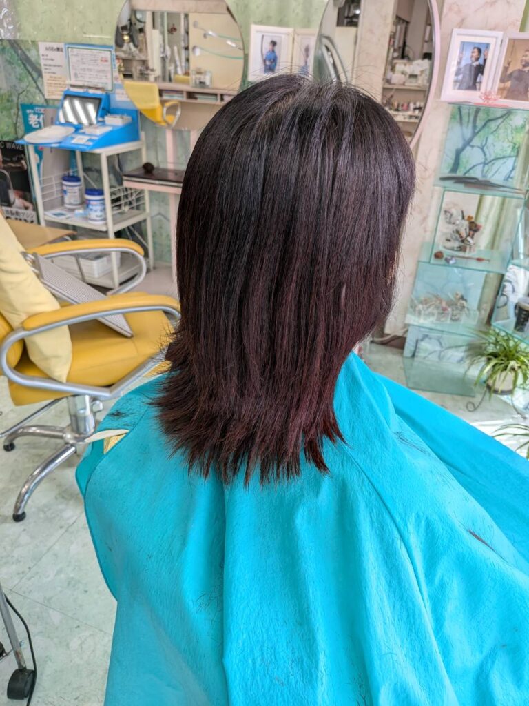先ずは、リセッターカットで、根本の無駄毛を収めたら、見て下さい、目の錯覚ではありません、カット前より髪の長さが長くなってますでしょう、これ、どうして?