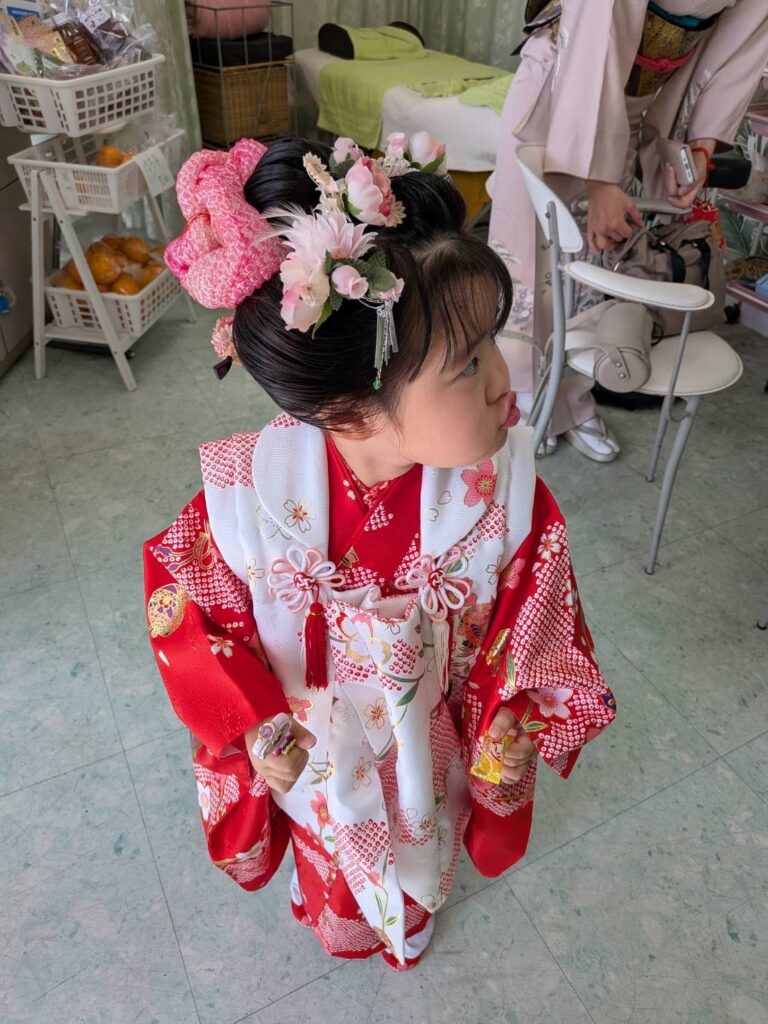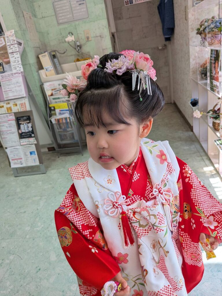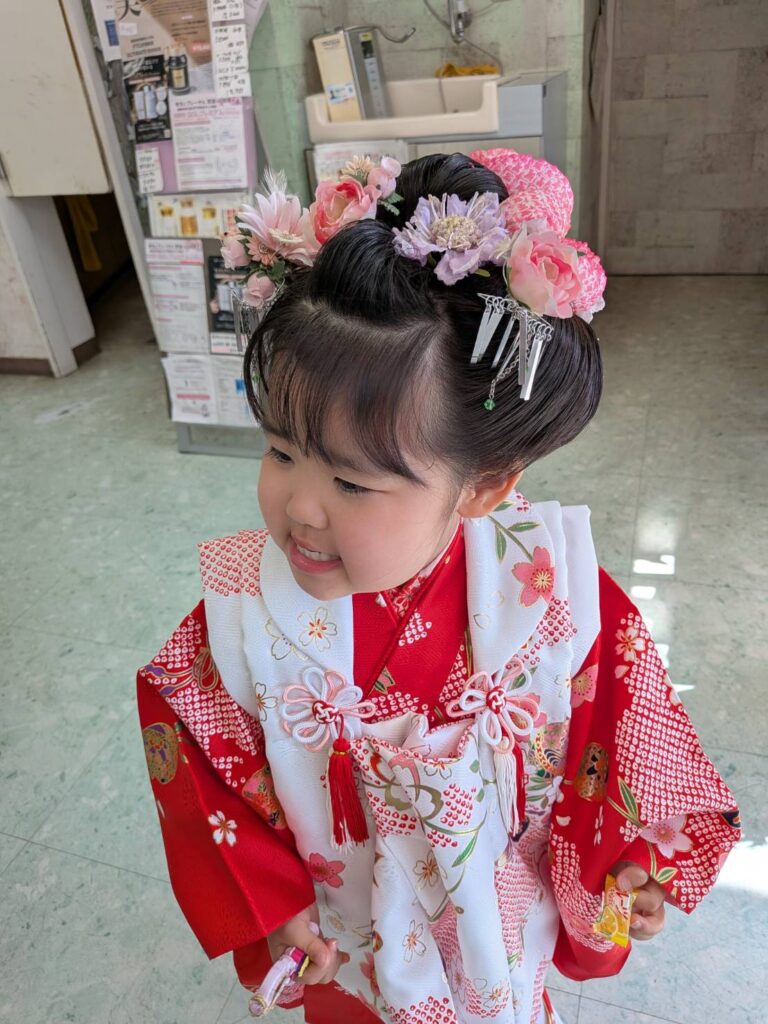 昨年の秋、3歳のお祝いで、日本髪を結わせて頂きました、あまりの可愛さに桜咲く春にもう一度のチャレンジです✨可愛すぎて、ご同伴のお祖母様も大喜びでした😊