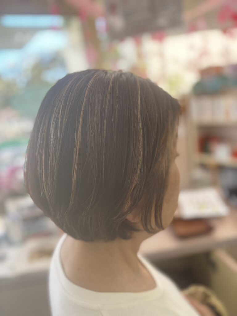 根本はアレルギー対応香草カラー。ハイライトを入れて。