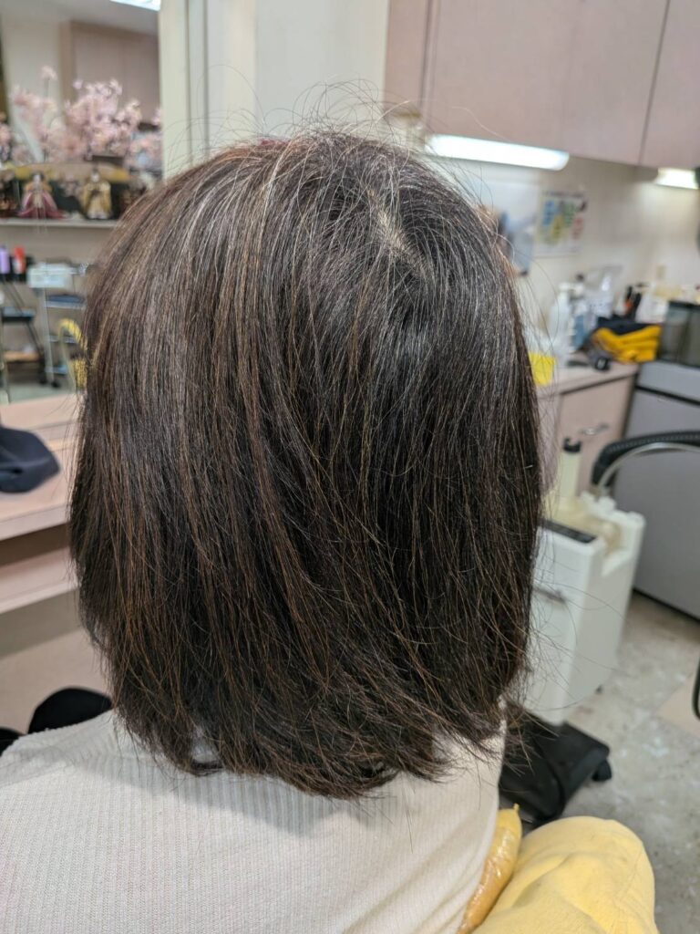 できるだけシルエットの長さを変えたくなかったので、ボリューム抑えのストレートパーマ&パートナオリジナルカラーで、納得のお仕上げにたどり着きました😊