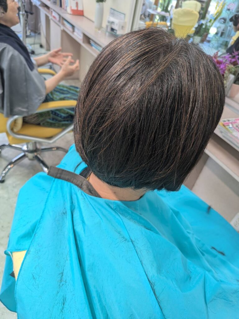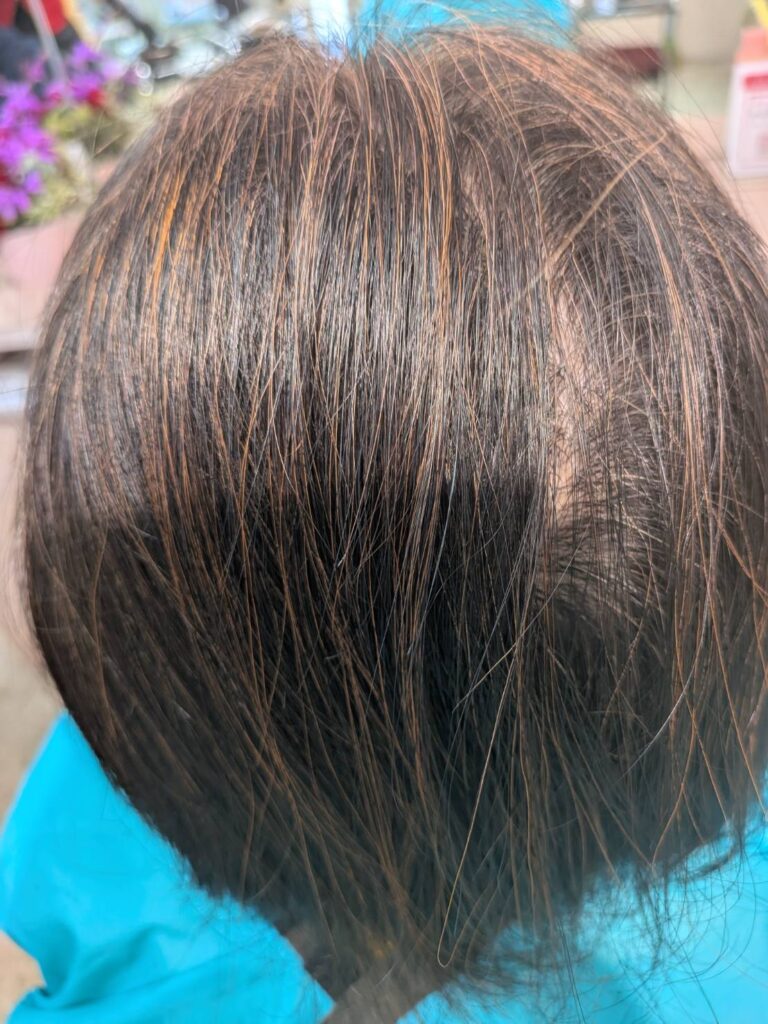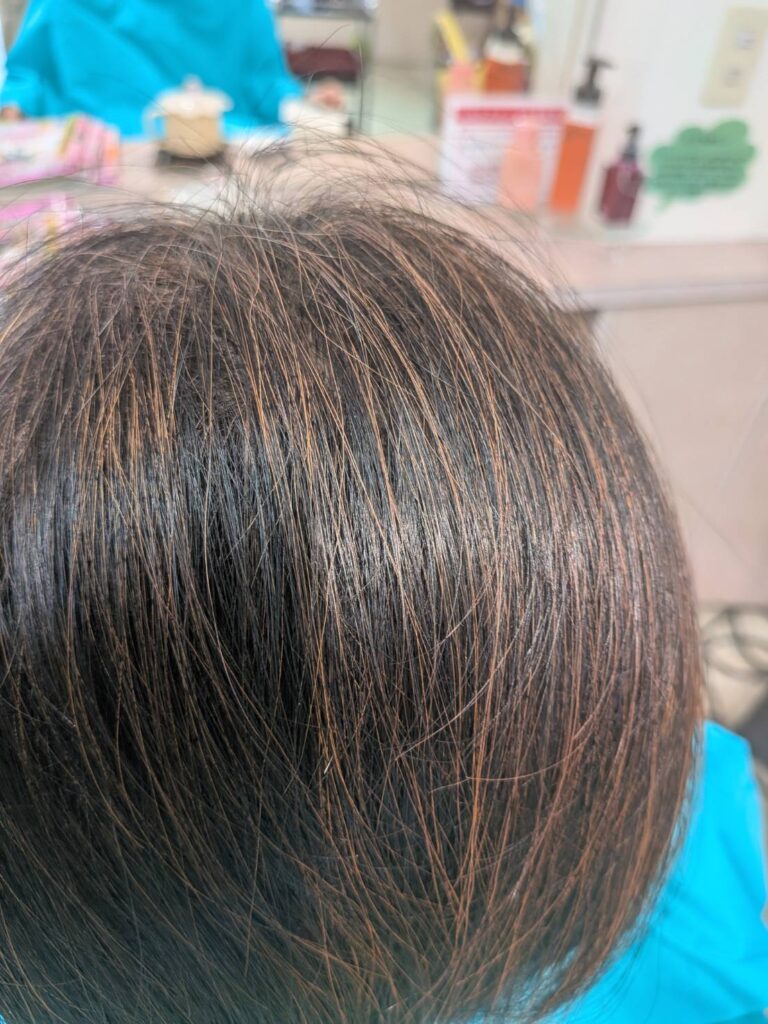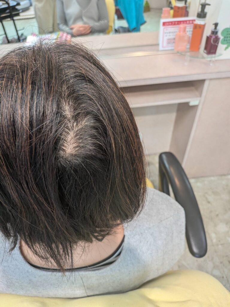 こちらのお客様もツムジの割れが気になって、2ヶ月前にストレートを掛けて、根元の新生毛2センチが、大暴れしているツムジの割れ状態ですね!