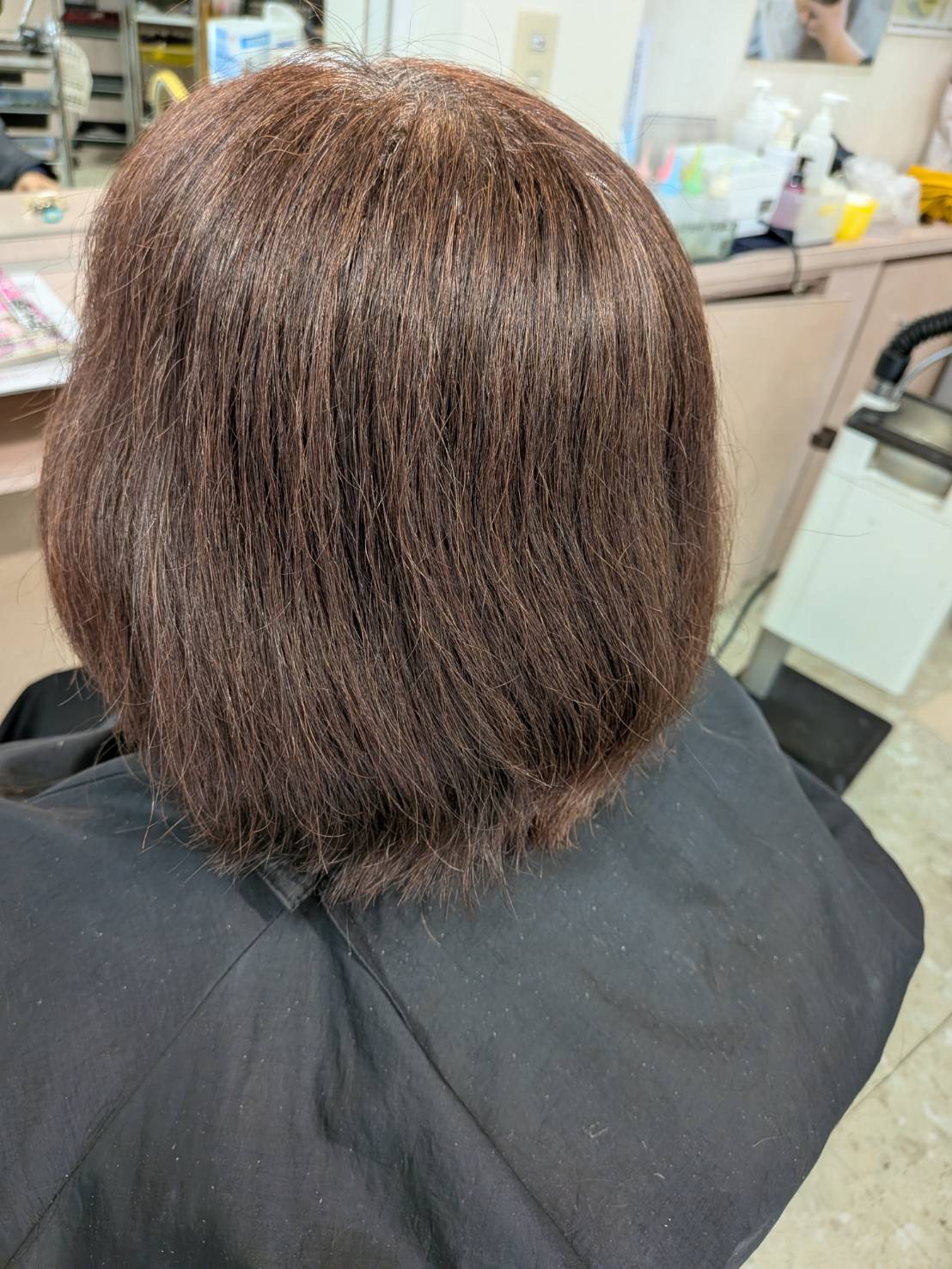 リセッターカットから3ヶ月程経ちました。 表面のクセのうねりが和らぎ長さも長くなってますね。 取り去った根本の無駄毛がこんなにありましたね! &nbs …