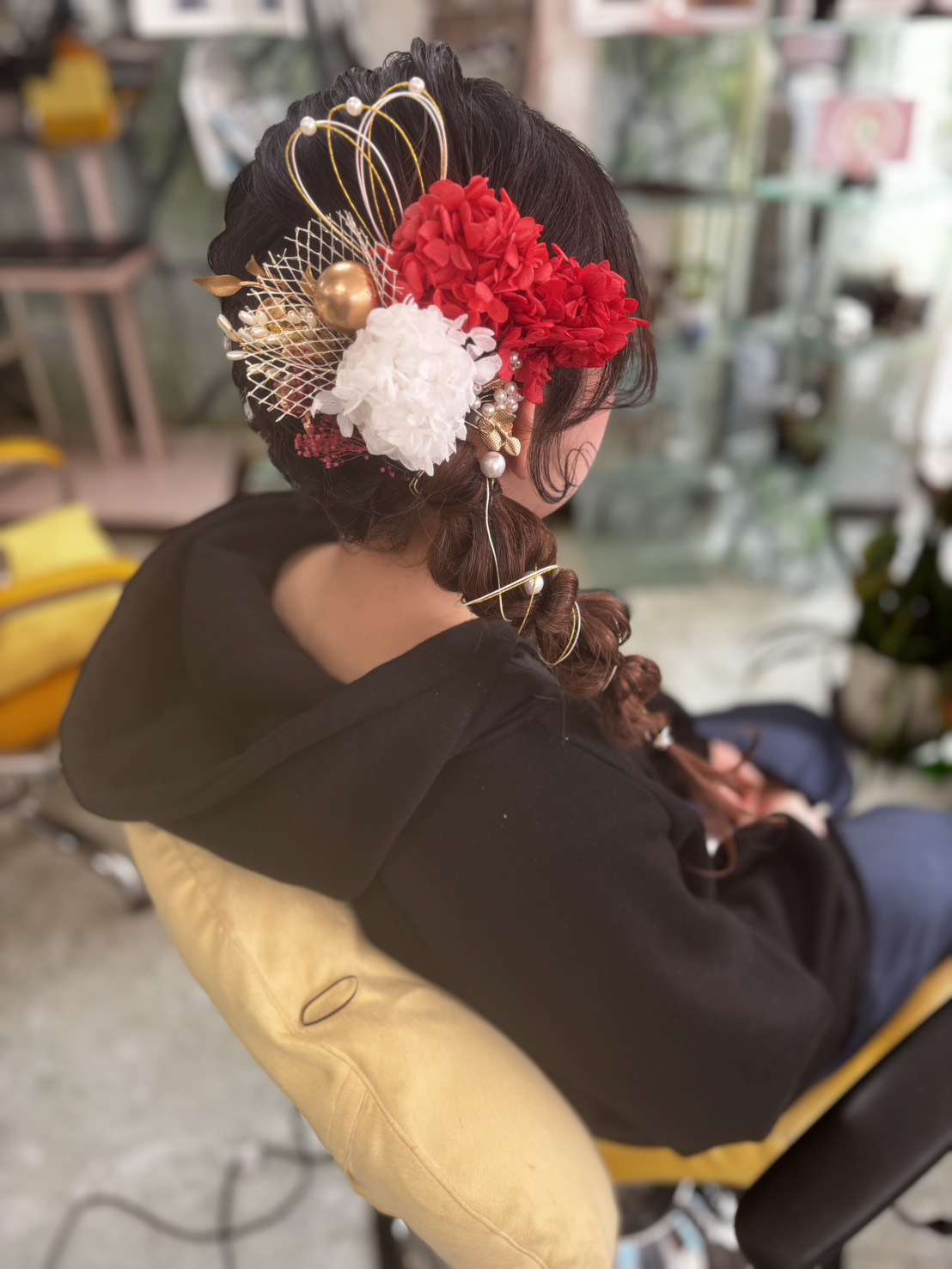 あさドラの松島菜々子さんのイメージで新年会出席のマダムアップアレンジさせて頂きました! 正面がお見せ出来ず残念です、とっても素敵に出来上がりました!二 …