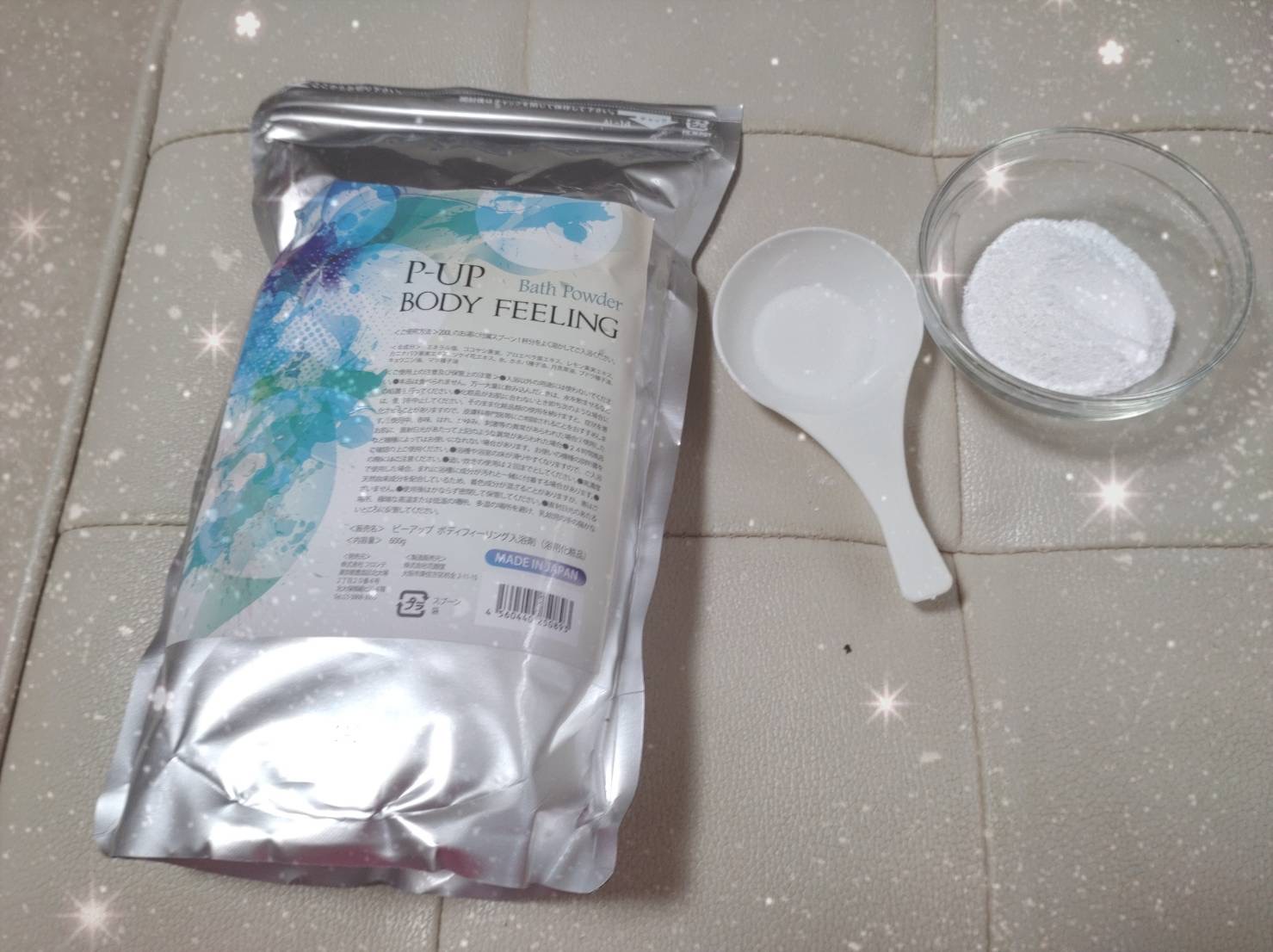 P_UPボディーフィリング入浴剤です。テラヘルツ鉱石が入っていて、私達には気づかない鉱石の振動が1分間に1兆回以上です。お風呂に入れると、お湯が柔らかくなり身体も温まります。ありがたいことに、水道水の残留塩素を中和してく …