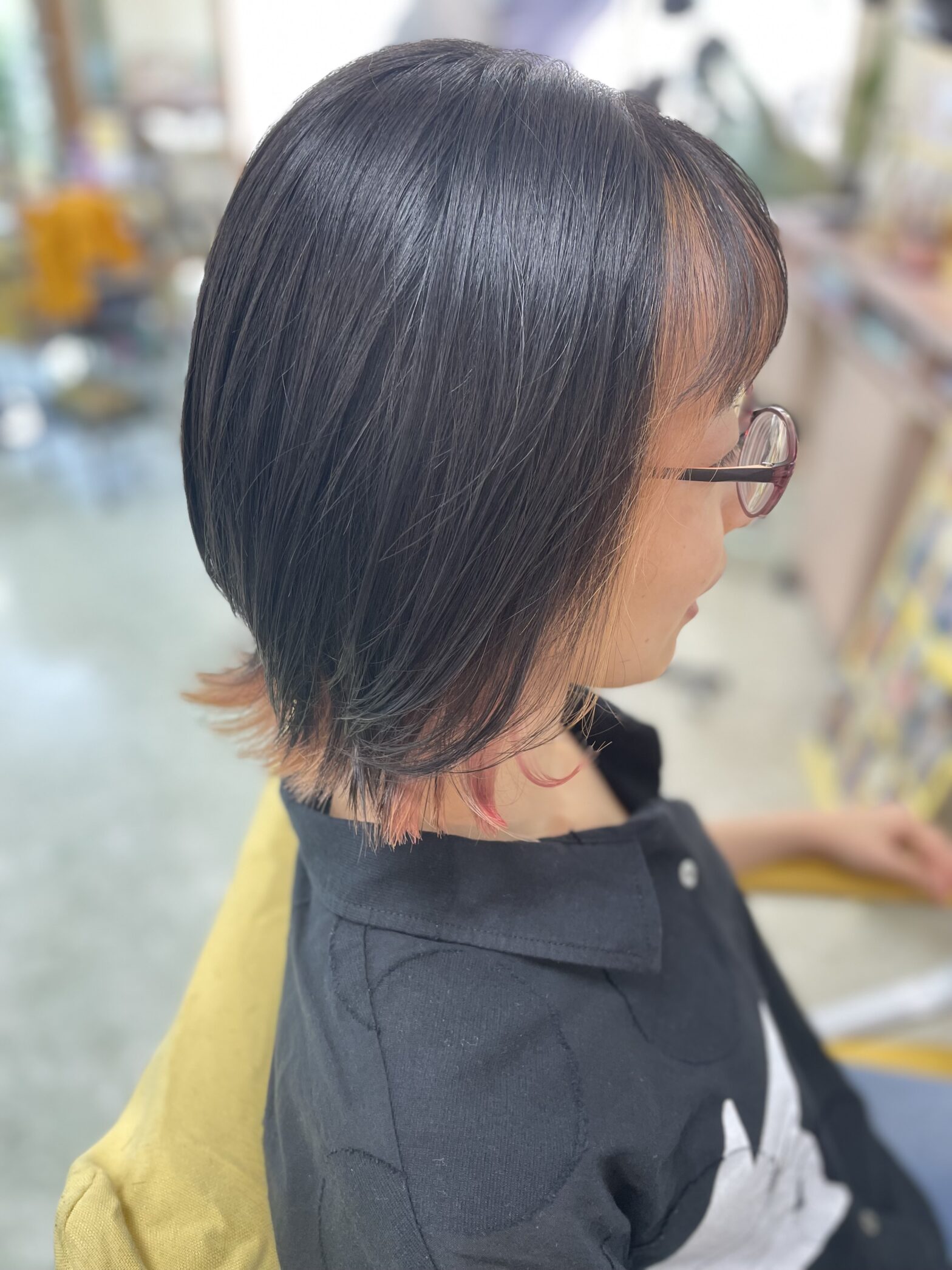 襟足、お顔周りはそのままでポイントストレート。 ハイライトのブリーチ部分もしっかりトリートメントしながら艶々の仕上がりになりました。 癖があるとなかなかできないスタイルに挑戦されました。
