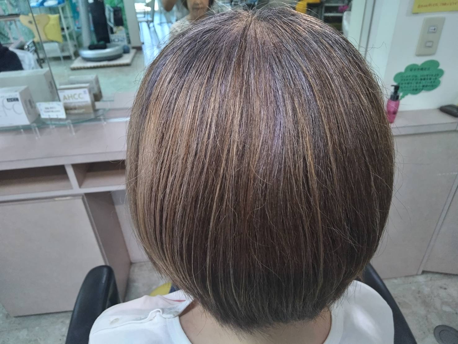 よく見て下さい❗️ お召し物と、髪のカラーリングが、同化して見えませんか? 編み物や洋裁をなさるお客様ですので、ご来店の折は、私、内海が創作意欲を刺激していただき、この髪色が誕生しました🍀 ホントため息が出 …